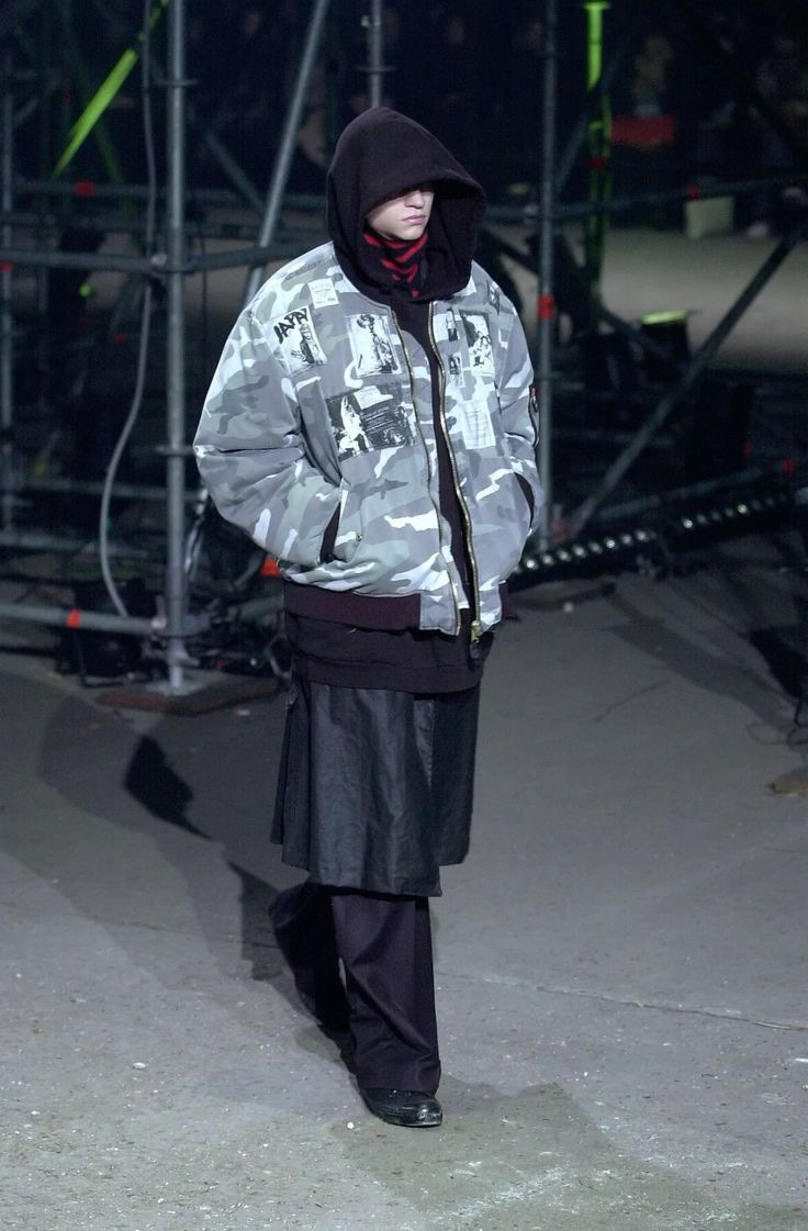 • Behind the scenes, stylists like Matthew Henson and Bloody Osiris were keeping the AW01 energy alive — mixing militarism, oversized proportions, and storytelling through fit.